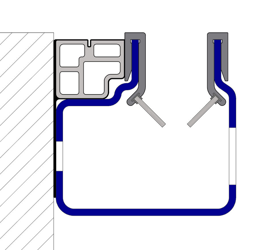 Es füllt den Raum zwischen Führung und Mauer aus, der durch die integrierte „Unterfütterung“ der Führungsschiene entsteht und isoliert so das Metall der Führung gegen die Außenluft.